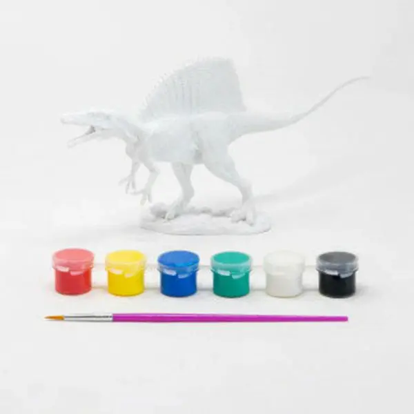ティラノサウルスと双璧をなす肉食恐竜スピノサウルスのPVC製フィギュアです。付属の6色の絵の具と筆を使ってオリジナル恐竜フィギュアをつくろう!